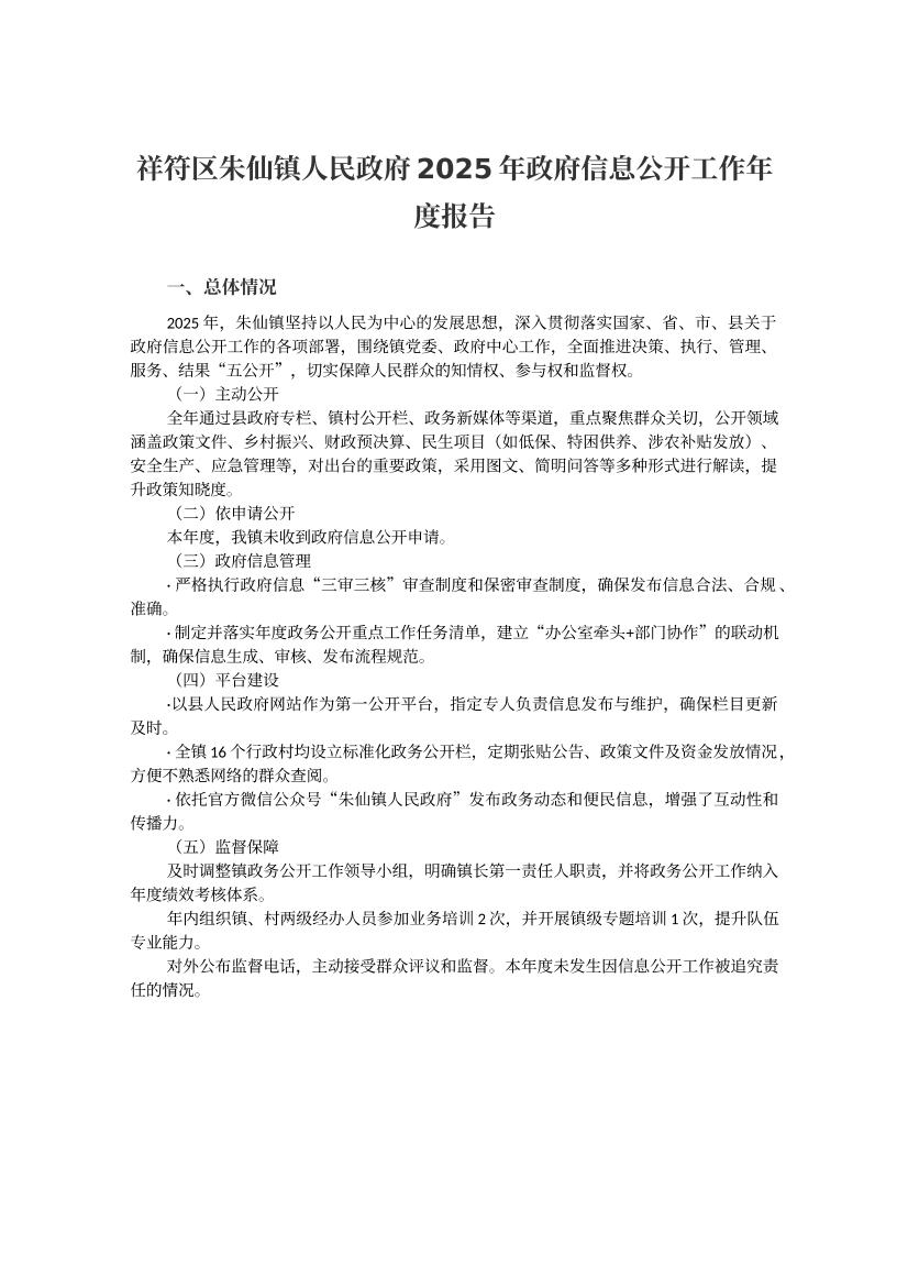 祥符区朱仙镇人民政府2025年政府信息公开工作年度报告