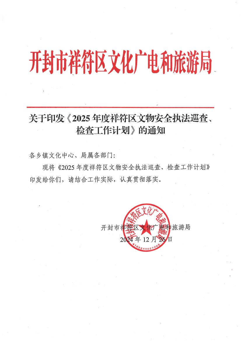 关于印发《2025年度祥符区文物安全执法巡查、检查工作计划》的通知