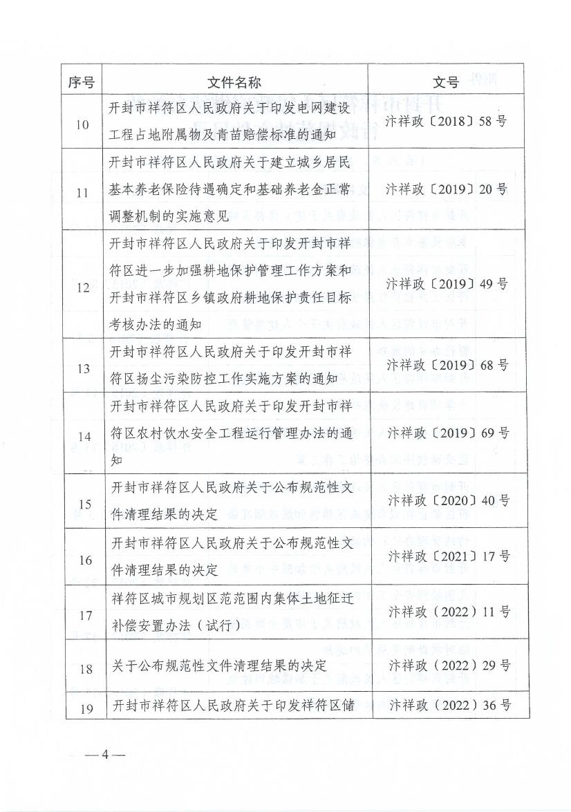 汴祥政〔2024〕12号开封市祥符区人民政府关于公布区政府行政规范性文件清理结果的决定