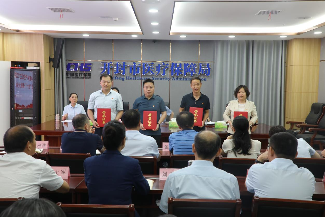会议由党组副书记王志主持,党组成员、副局长马瑰芳宣读了《市委市直机关工委关于表彰优秀共产党员、优秀党务工作者和先进基层党组织的决定》,党组成员、副局长黄俊卿宣读了《开封市医疗保障局关于表彰优秀共产党员、优秀党务工作者的决定》,局党组成员为受表彰人员颁发了证书。医疗保障局党组书记、局长苏德超作了讲话,带领全体人员回顾了党的光辉历程,进一步激励大家不忘初心、牢记使命,用实际行动向党的生日献礼,并提出要求。一是坚定理想信念不动摇,始终保持对党绝对忠诚。二是发扬真抓实干精神,始终坚持走在前做表率。三是永葆勤政为民情怀,始终全心全意为人民服务。