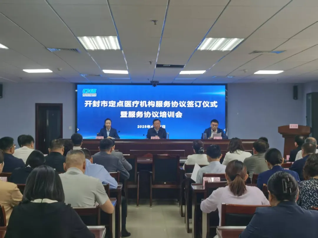 为深化医疗保障制度改革、提升医疗服务水平,4月27日上午,市医保中心召开2025年定点医疗机构服务协议签订仪式暨服务协议培训会。市医保局党组书记、局长苏德超,市医保局党组成员、副局长陈杰,市医保中心主任何湘出席会议。市直及驻汴省管定点医疗机构分管领导、医保科长和各县区分局负责人、经办机构负责人及业务骨干80余人参加会议。