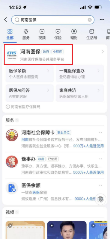 一、支付宝或微信搜索“河南医保”小程序(以支付宝为例)