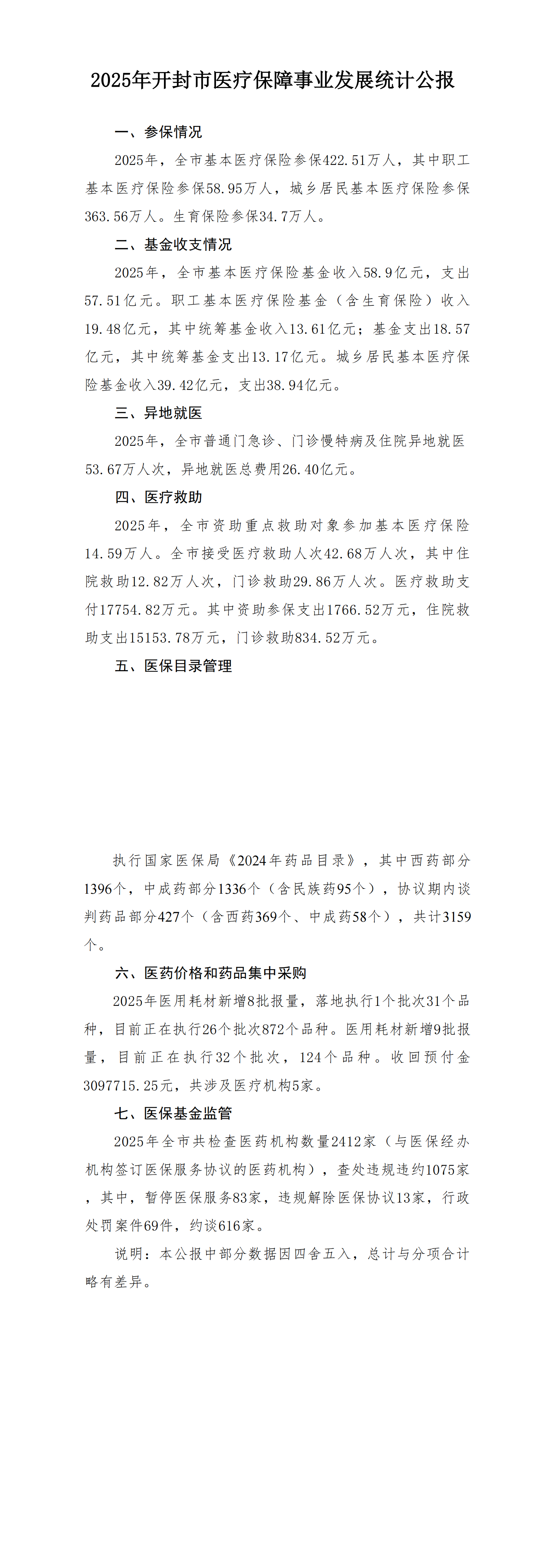 2025年开封市医疗保障事业发展统计公报