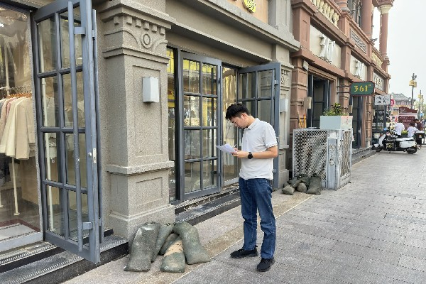该单位工作人员深入街区,全面检查了街区内排水管道、井盖、雨水箅子等排水设施,保障排水通畅,重点对历史建筑可能因强降雨而引发的安全隐患进行研判。同时,走访了沿街商铺,提醒商户密切关注天气预警,提前备好防汛物资,全面增强防汛减灾能力。