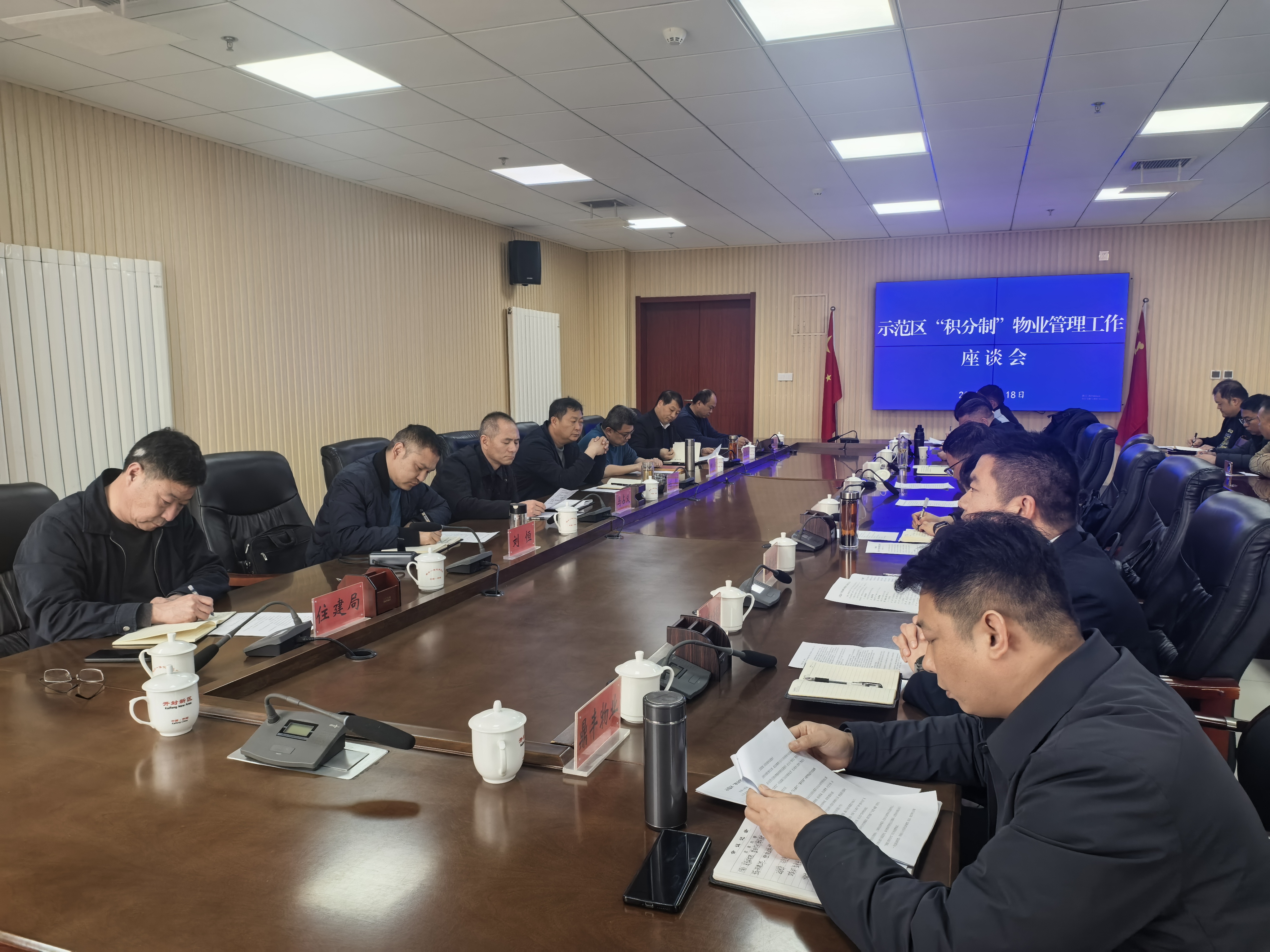 为进一步推进“积分制” 物业管理工作提质增效,3 月 18 日下午,在示范区召开了党建引领“积分制” 物业管理工作座谈会。会议由示范区委组织部长王鸿韬主持,市住建局副局长刘彬、四级调研员马占义,示范区副书记贾琦出席会议并讲话。市物业服务中心、市物业协会、示范区住建局及相关示范点办事处、社区负责人参加了会议。