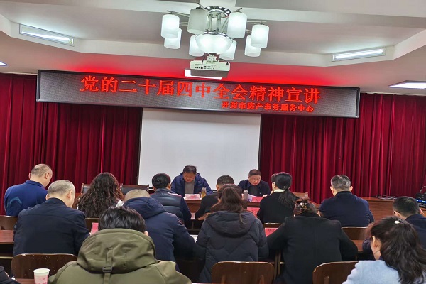 为深入贯彻党的二十届四中全会精神,扎实推进学习宣传贯彻工作走深走实,引导广大党员干部切实把思想和行动统一到党中央决策部署上来,3月19日下午,市房产事务服务中心邀请开封市住房和城乡建设局副局长刘彬作党的二十届四中全会精神专题宣讲。中心科级以上党员干部、各分中心、开封市工商行政事业用房服务中心领导班子及办公室主任参加会议。