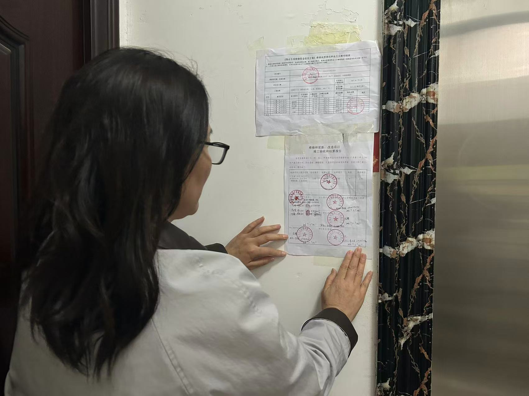 抽查期间,工作人员结合本次查看的维修项目,向列支范围业主开展面对面政策宣讲。她们用通俗易懂的语言,讲解维修资金的使用范围、申请流程、公示要求、费用分摊、保修期限等核心政策,现场解答业主提出的各类疑问,引导业主主动参与维修资金使用监督,强化业主的维权意识和参与意识。