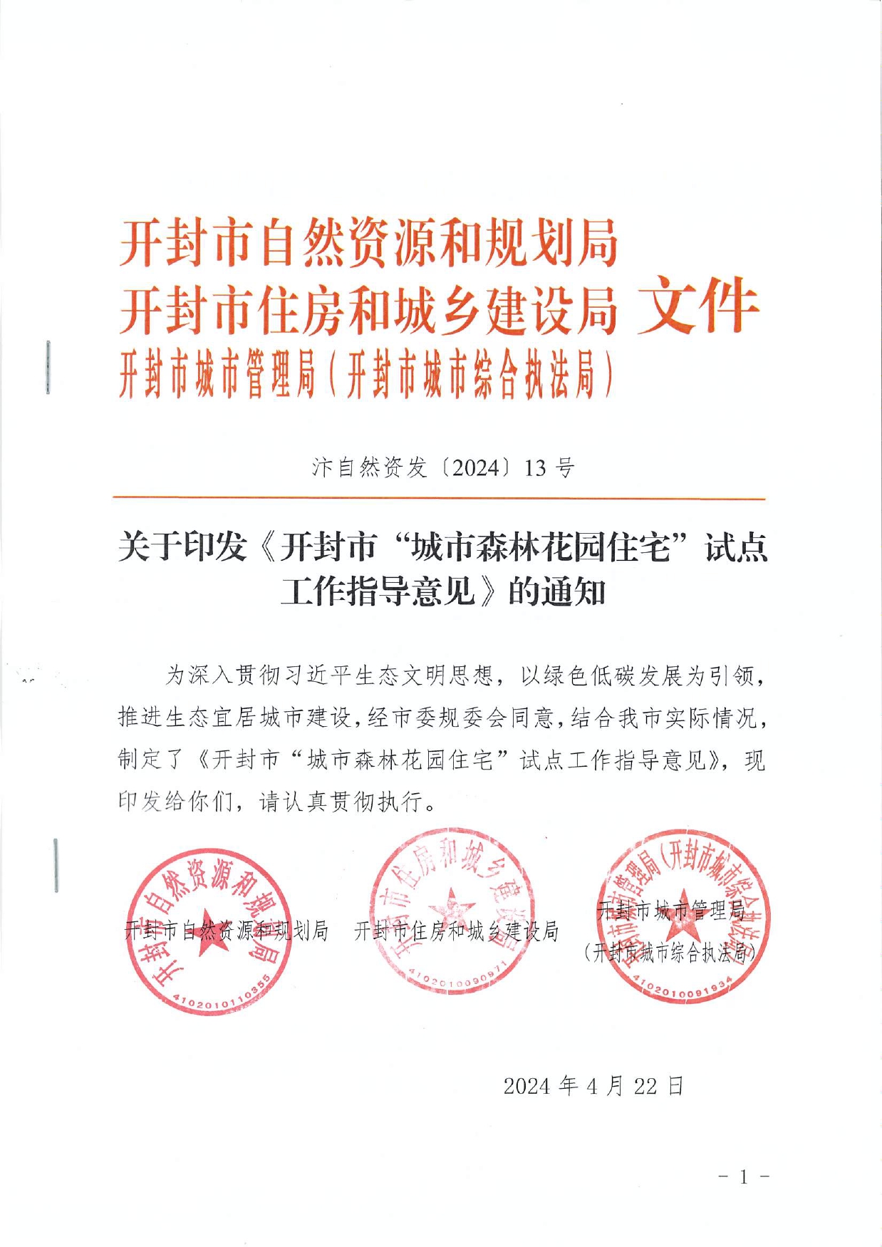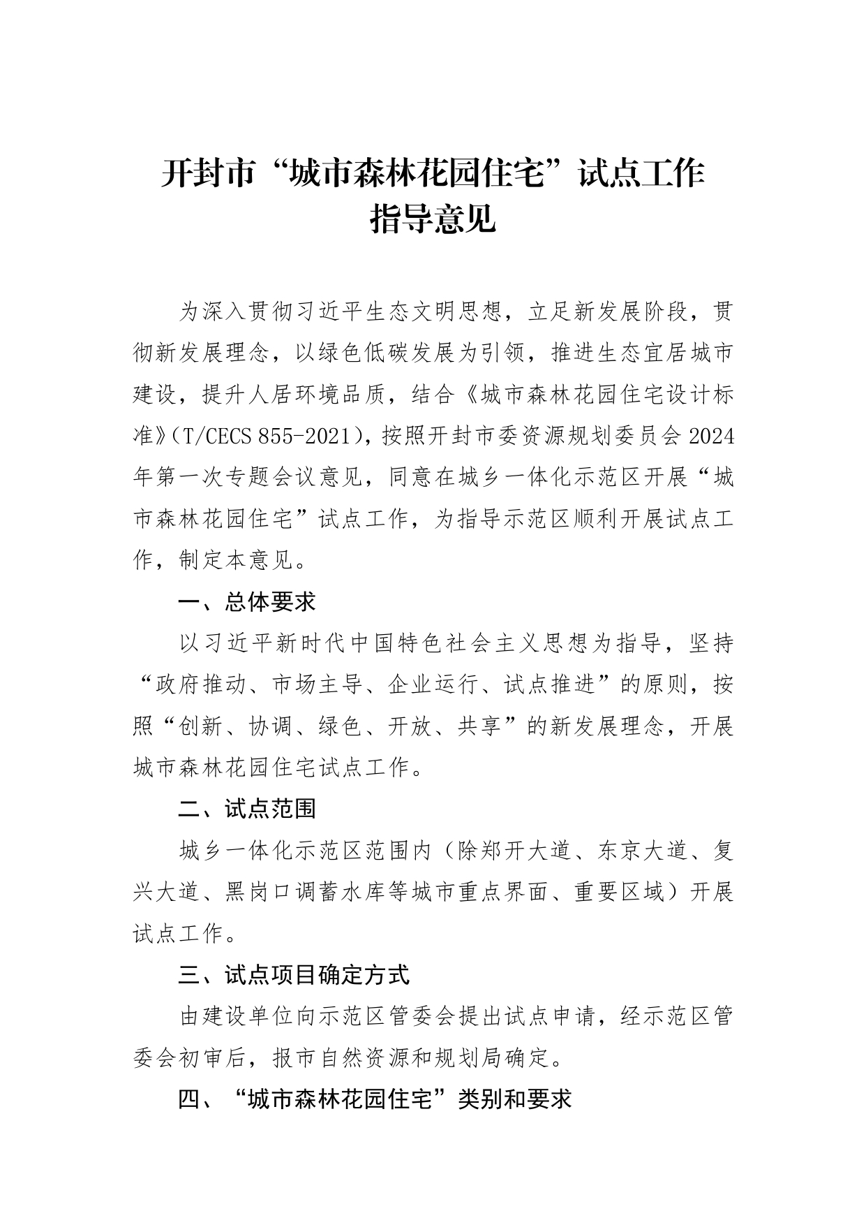 关于印发《开封市“城市森林花园住宅”试点工作指导意见》的通知