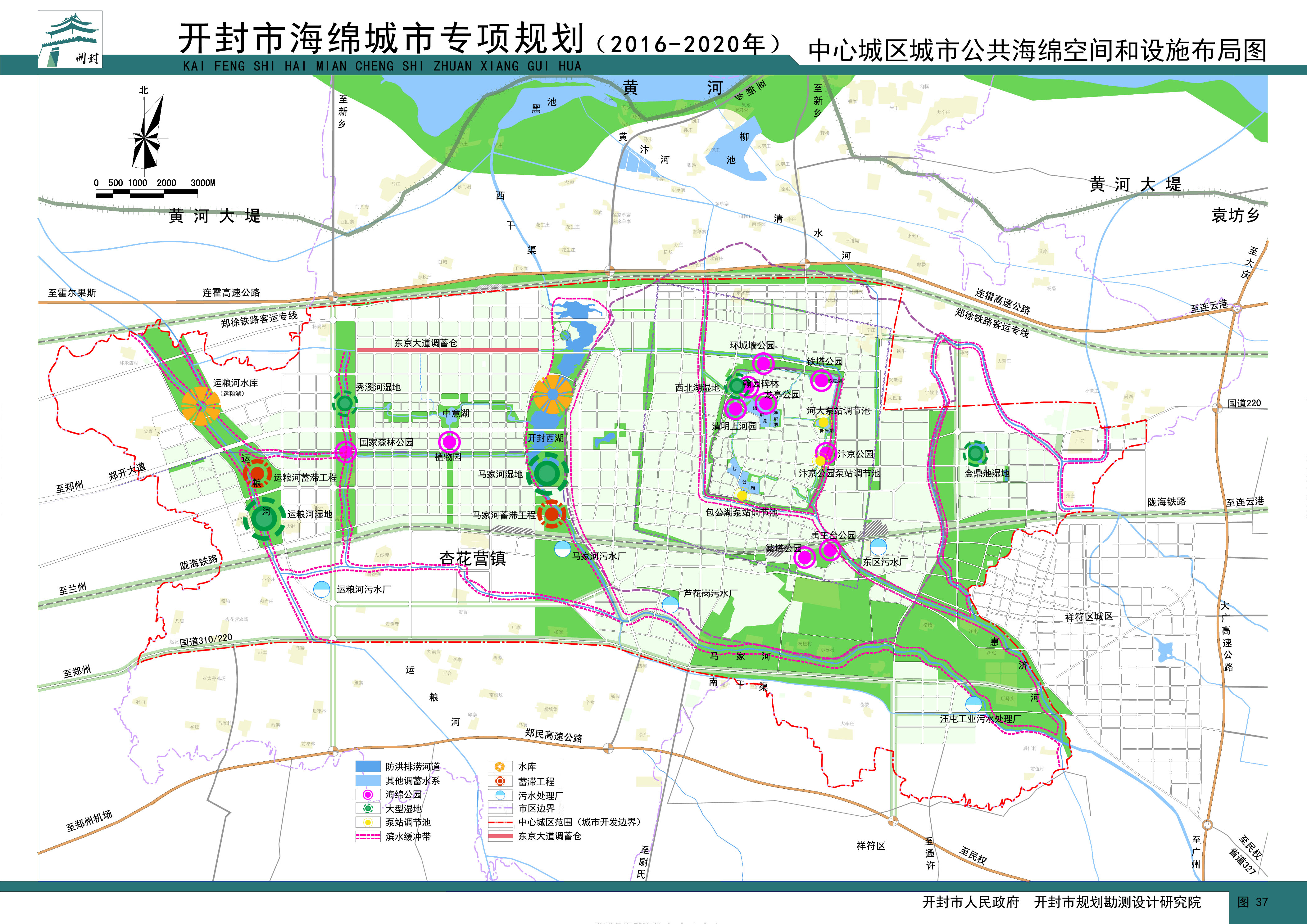 中心城区城市公共海绵空间及设施布局图