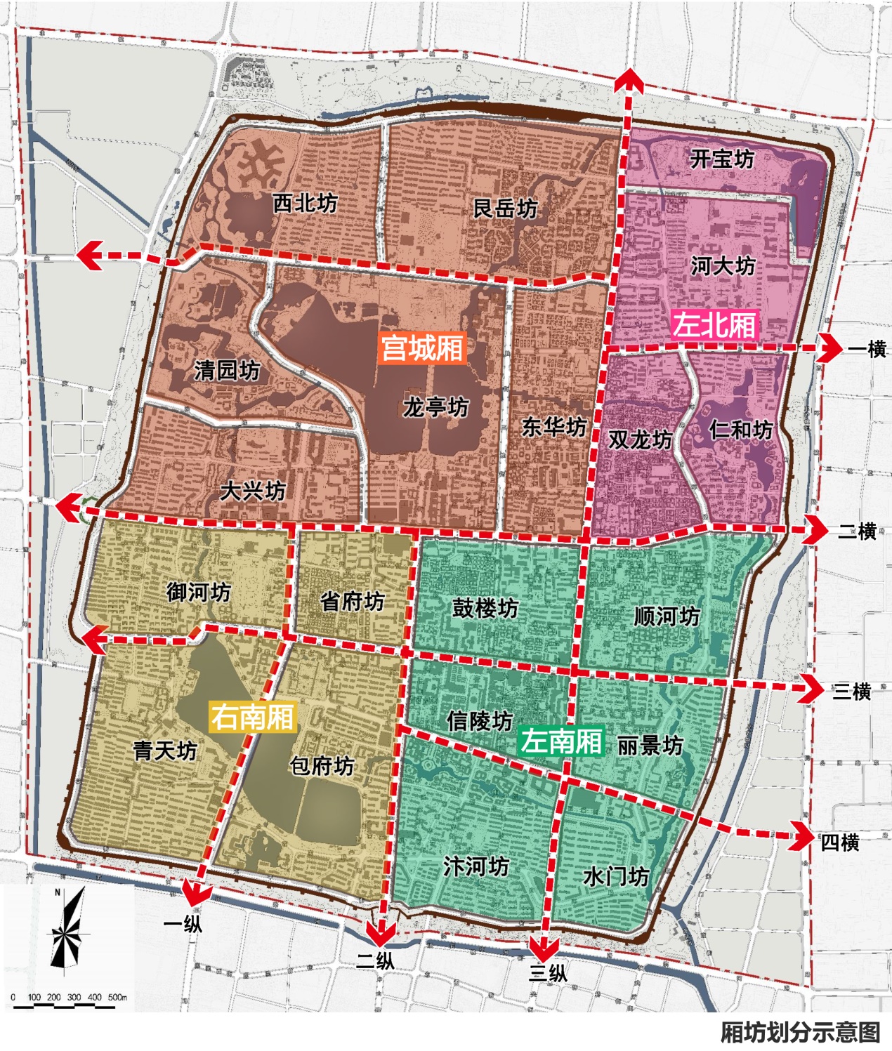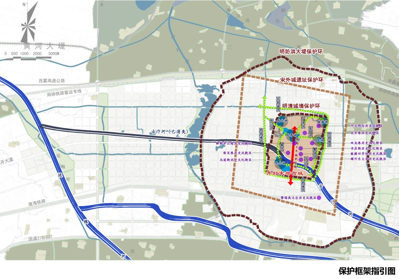 三环:明清城墙保护环、宋外城遗址保护环、明防洪大堤保护环