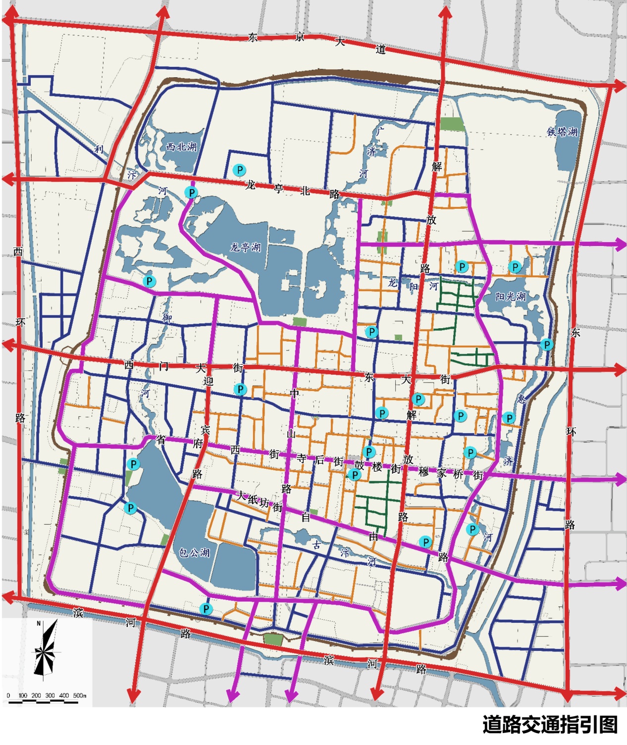 2.业态引导、提振功能。一是优化用地调整,通过“三增四减”指引模式,疏解古城人口,增强功能布局的合理性,增加文化产业及生态用地,建设宜居之城。二是采取“小街区、密路网”的空间模式,打造便捷舒适的道路交通体系。三是以创新为驱动,以文化体验、特色商业、旅游休闲、情景居住、宋都文创作为古城主导功能业态,打造宜业之城。四是把宋都古城作为一个开放式的旅游景区,实现全景、全业、全时、全程、全民的古城全域旅游体系。