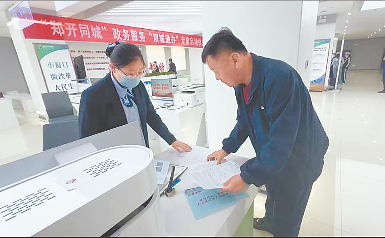 为方便申请人办理业务,郑开两地在市级政务大厅设置“郑开同城”服务专窗,配备业务能力强、责任心强的工作人员负责办理“双城通办”业务。今后还将加强“郑开同城”服务专窗能力建设,逐步延伸基层专窗覆盖面,探索尉氏县与航空港区、城乡一体化示范区与中牟新区分别组团试点,边界互联,开设异地受理专窗。