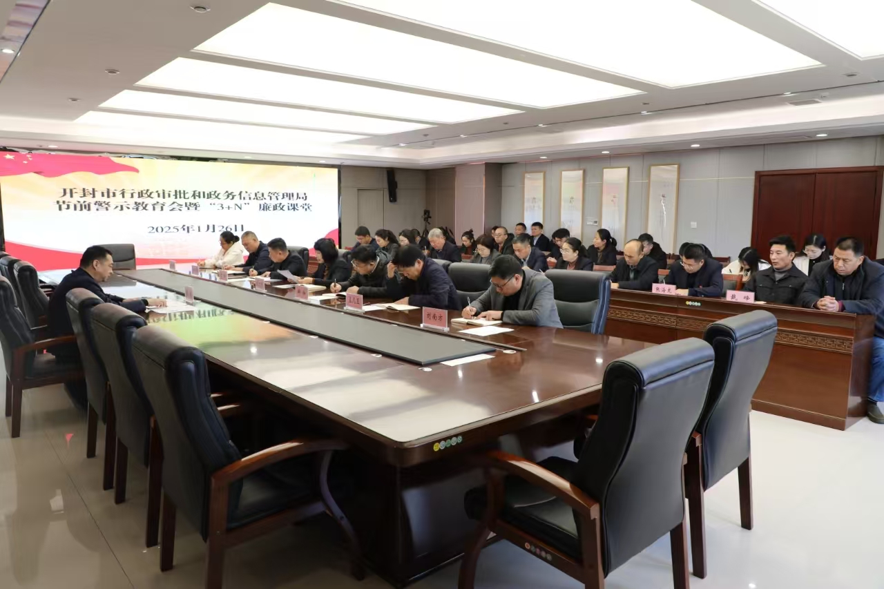 新春佳节将至,为进一步强化全体党员干部廉洁自律意识,确保廉洁过节、文明过节、安全过节,1月26日上午,开封市行政审批和政务信息管理局召开节前廉政警示教育会议暨廉政课堂。局党组书记、局长张磊主持会议,局领导班子成员,机关各科室和局属事业单位全体干部职工参加会议。