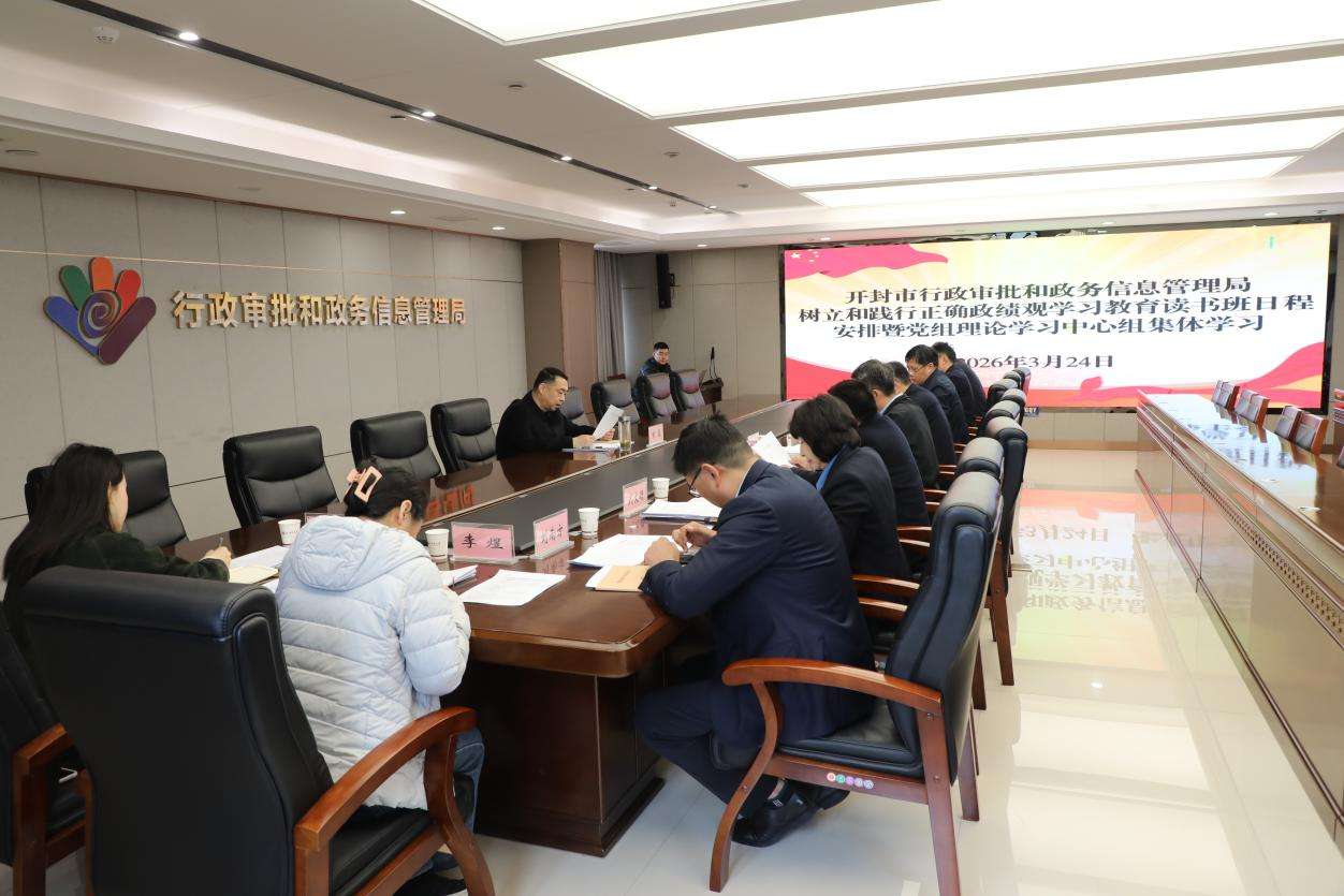 为深入学习贯彻习近平总书记关于树立和践行正确政绩观的重要论述,按照中央、省、市工作安排,3月24日至25日,开封市行政审批和政务信息管理局党组集中2天时间,采取书记领学、集中自学和交流研讨相结合的方式,举办树立和践行正确政绩观学习教育读书班。局党组书记、局长张磊主持学习并作开班讲话,局党组班子全体成员参加学习。